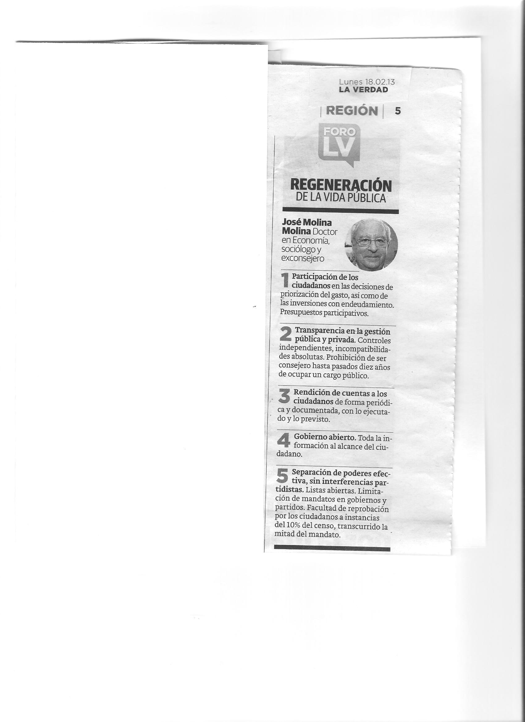 Respuestas a la encuesta publicada por el Diario La Verdad el día 18 de febrero de 2013